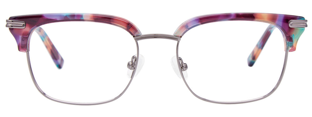 Explore specs and images: EASYCLIP EC423 Eyeglasses 080 Purple Marbled & Gunmetal 49mm.