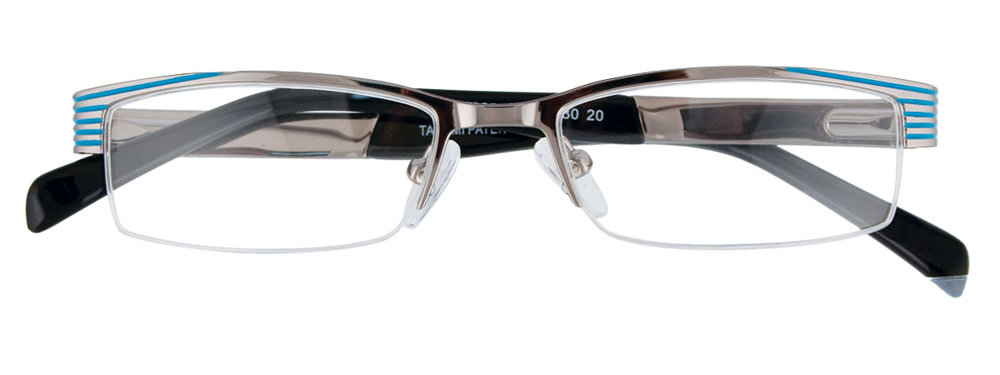 Explore specs and images: TAKUMI T9925 Eyeglasses 020 Shiny Silver & Light Blue 47mm.